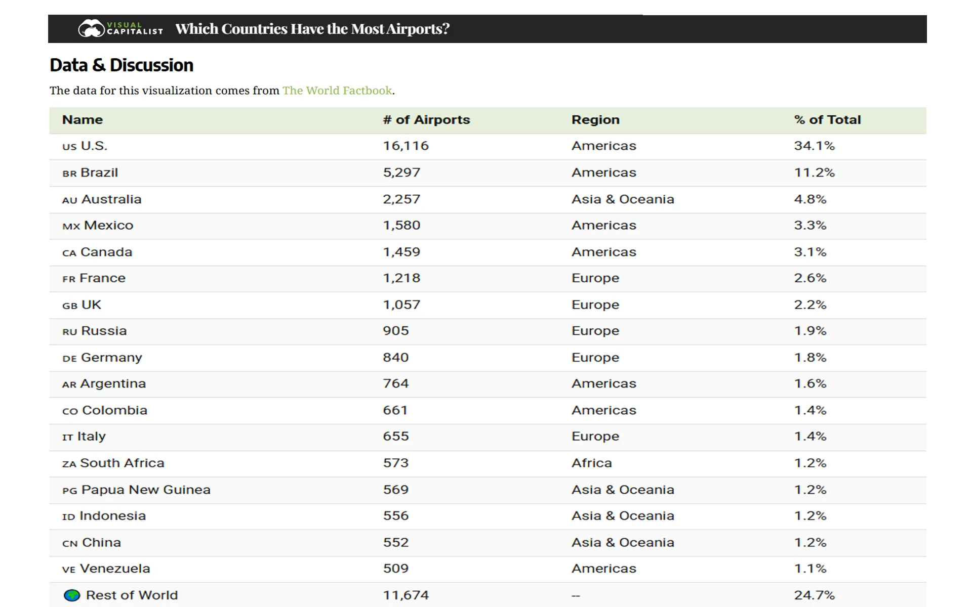 According to market data from The World Factbook, the United States, Brazil, and Australia lead the world in airport numbers, with 16,116, 5,297, and 2,257 airports respectively. The greater the number of airports and transportation hubs in a target market, the denser the high-frequency charging scenarios — enabling investors to build scalable shared charging networks.